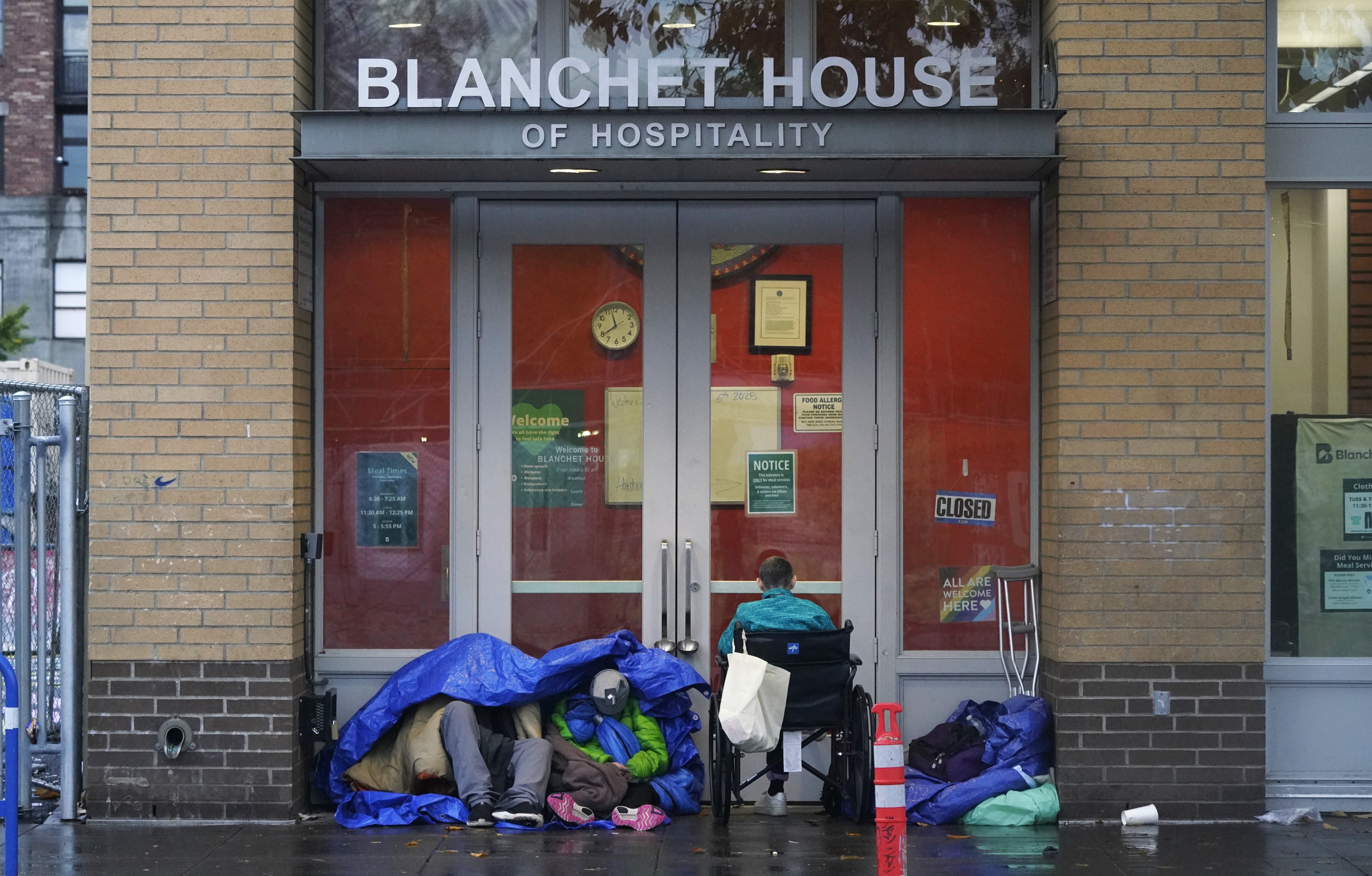 11月5日黎明,在好意思国俄勒冈州波特兰的深秋寒意中,四海为家者瑟索在街边旯旮里。新华社 发